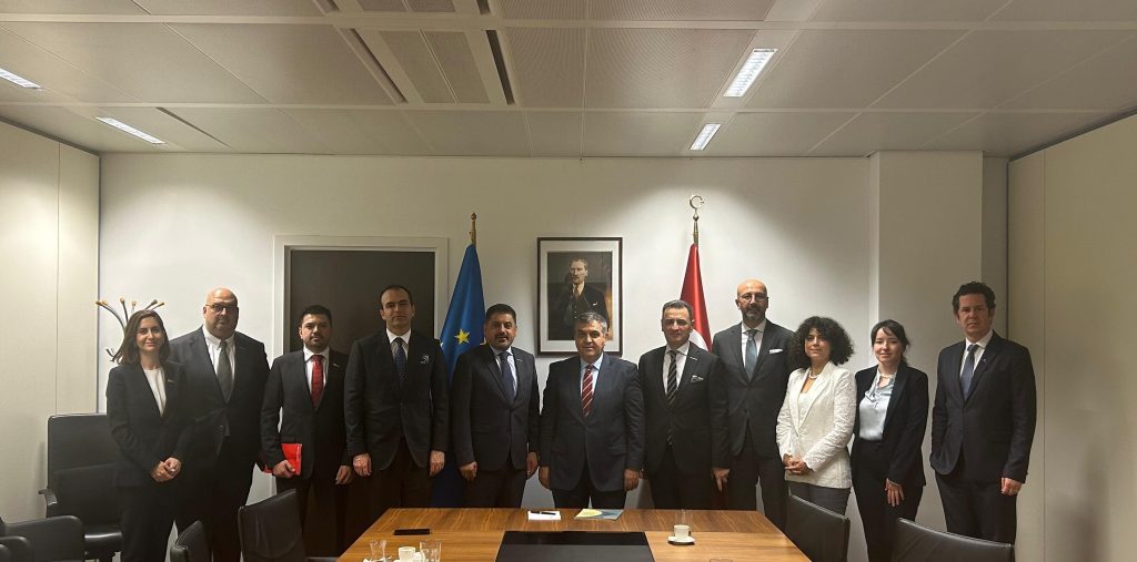 AB nezdinde Türkiye Cumhuriyeti AB Daimi Temsilcisi Büyükelçi Faruk Kaymakcı, Türkiye Cumhuriyeti Brüksel Büyükelçisi Bekir Uysal ve Türkiye Cumhuriyeti NATO Daimi Temsilcisi Büyükelçi Levent Gümrükçü ile bir araya gelen TÜRKONFED heyeti, Türkiye’nin ikili ilişkiler, Avrupa Birliği entegrasyon öncelikleri ile NATO ve yeniden şekillenen güvenlik mimarisi hakkında kapsamlı istişareler gerçekleştirerek, fikir alışverişinde bulundu.