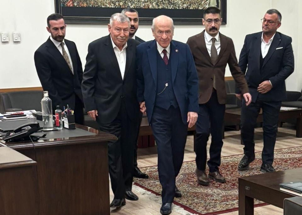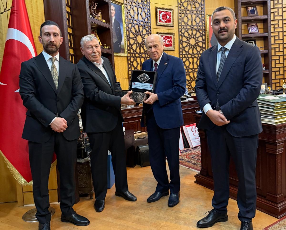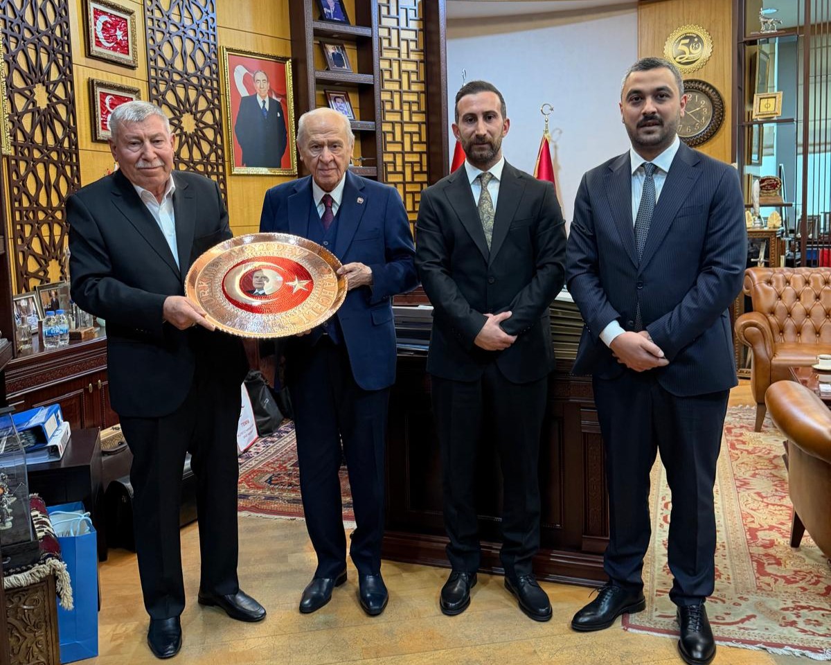Badıllı Aşireti lideri Sait Badıllı, MHP ilçe başkanı Mustafa Fettahlı ve Adnan Menderes Badıllı, Devlet Bahçeli’yi makamında ziyaret etti.